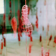 一百多個「類陽具型態體」被血紅籠子禁錮於內,